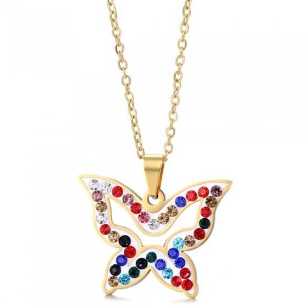 Divatos CB-20905 nyakék verhetetlen áron. A pillangó medál színes cirkónia ékkövekkel díszített. Az ékszer nem tartalmaz nikkelt, ezért érzékeny bőrű emberek is viselhetik.