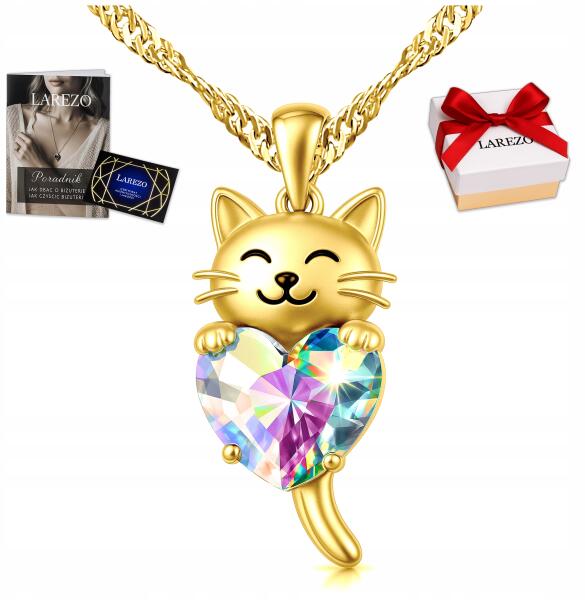 Larezo Arany Nyaklánc Kristály Szív Macska Aranyozott Macska Szív Ezüst 925 (łańcuszek srebrny kot kolorowe serduszko koty)ALLEGRO