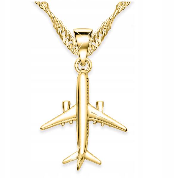 Larezo Arany Nyaklánc Repülőgép Utazás Aranyozott Repülőgép Ezüst 925 (łańcuszek srebrny z samolocikiem na szczęście)ALLEGRO