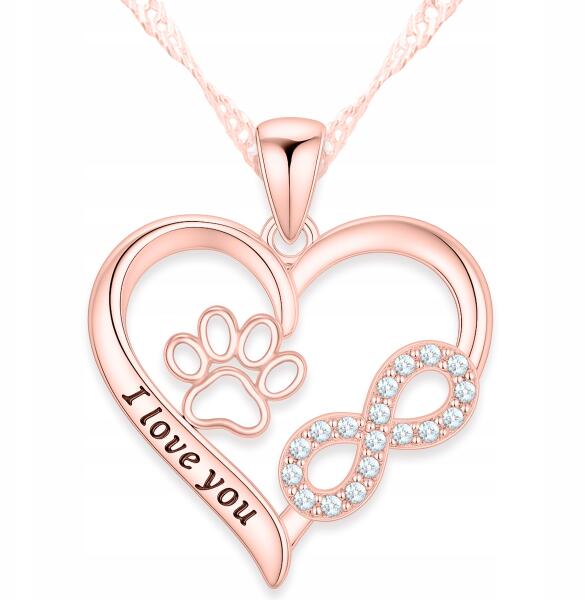 Larezo Aranyozott szív nyaklánc mancsokkal és végtelennel cirkóniákkal Ezüst 925 (łańcuszek znak nieskończoność łapka serduszko)ALLEGRO