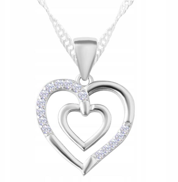 Larezo Ezüst nyaklánc Dupla szív cirkóniákkal Szerelem Két szív Ezüst 925 (łańcuszek białe cyrkonie z podwójnym sercem 1)ALLEGRO