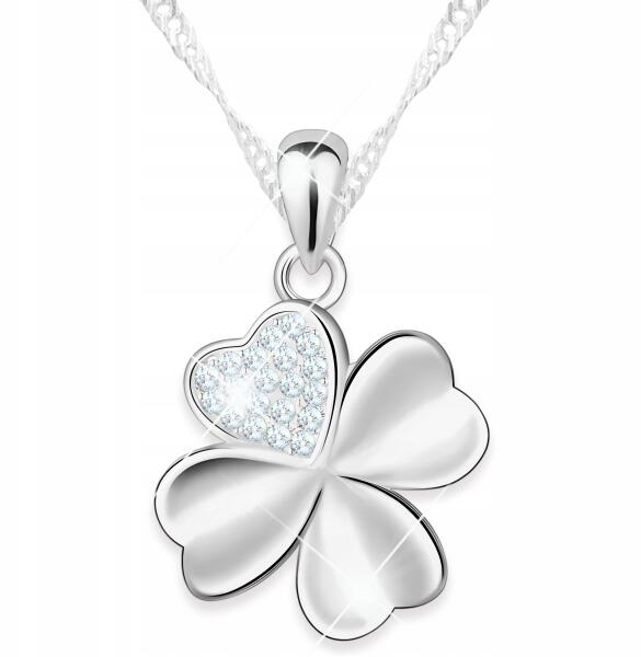 Larezo Ezüst nyaklánc Négylevelű lóhere szív cirkóniákkal Ezüst 925 (łańcuszek srebrny listek liść kwiat koniczyna)ALLEGRO