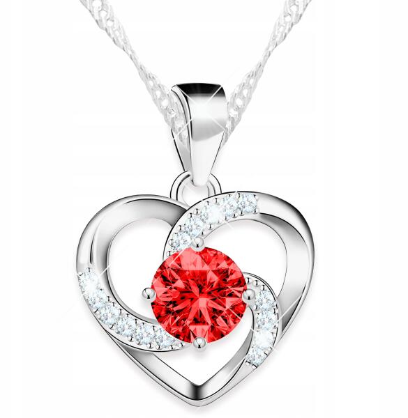 Larezo Ezüst szív nyaklánc piros szemekkel rubin cirkónia Ezüst 925 (łańcuszek czerwone serduszko z cyrkoniami)
